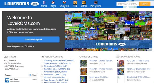 Loveroms es el sitio con mejor diseño, pero no se queda solo con eso, también tiene contenidos para 96 plataformas diferentes, las cuales englobadas nos dan un total de más de 77 mil ROMs para bajar. Como yapa, en este sitio tienen un emulador online que nos permite jugar algunos juegos desde el navegador.